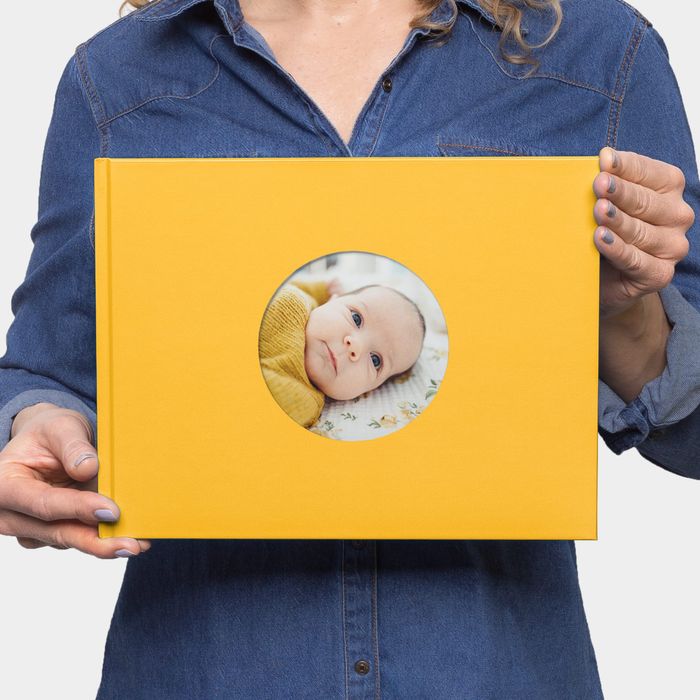 Das Fenster im Einband verrät dir auf den ersten Blick, was in diesem klassischen Fotobuch auf dich wartet – das perfekte Geschenk voller unvergesslicher Momente.