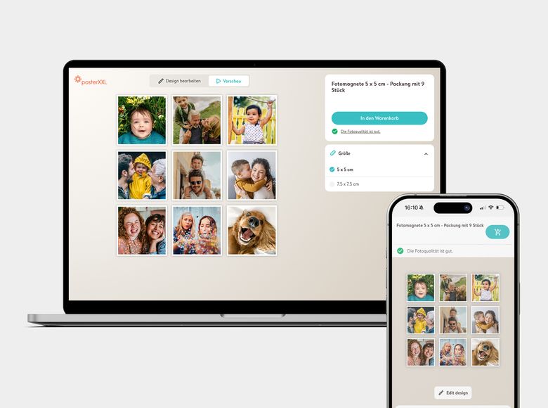 Behalte die Einkaufsliste immer im Blick oder hänge das neueste Meisterwerk des Kindes an den Kühlschrank mit personalisierten Fotomagneten. Du kannst sie in nur wenigen Klicks gestalten und ein originelles Geschenk für Freunde, Familie und Kollegen erstellen. Von Familienfotos bis zu den besten Partybildern – bei posterXXL kannst du einzigartige Magnet-Fotos bestellen und deine Lieblingsmomente immer wieder erleben.